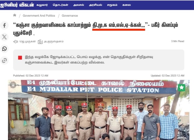 திமுக கஞ்சா குற்றவாளிகளை காப்பாற்றுவதாக முதலிப்பேட்டை காவல்துறையினர் குமுறுகிறார்களே, காவல்துறையை வைத்திருந்த பாஜக இதற்க்கு செய்தது என்ன?