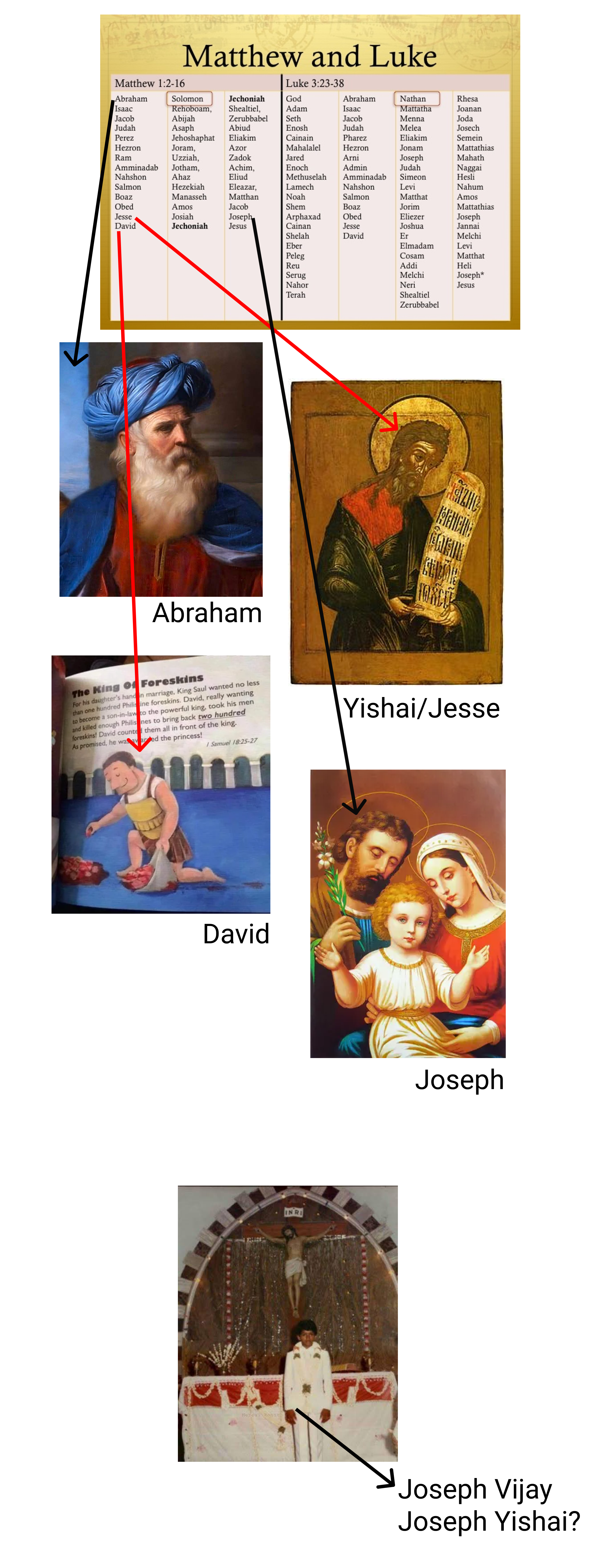 ஜோசெப் இஸ்ரேலை ஆண்ட டேவிட்டின் வம்சாவளியில் வந்தவன், டேவிட்டின் தந்தை இஷாய். இஸ்ரேலியர்கள் யூதர்கள்!