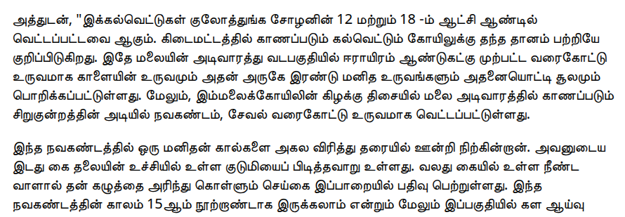அந்த கோவில் அடிவாரத்தில் சோழர் காலத்துக்கு முற்பட்ட கல்வெட்டுகள் உள்ளன. அதில் என்ன இருந்ததென்று படத்தை பார்த்து தெரிந்துகொள்ளவும்.